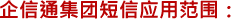 企信通與中國移動、電信、聯(lián)通合作的一項新業(yè)務,短信通用戶可以WEB方式通過服務平臺向中國移動、中國聯(lián)通、中國電信和中國網通用戶實時或定時發(fā)送短消息。可廣泛應用于商品(訂單)處理通知、促銷信息發(fā)布、咨詢服務、會議(緊急)通知、節(jié)日祝福、新產品發(fā)布、客戶溝通等方面,實現(xiàn)移動辦公、移動服務!