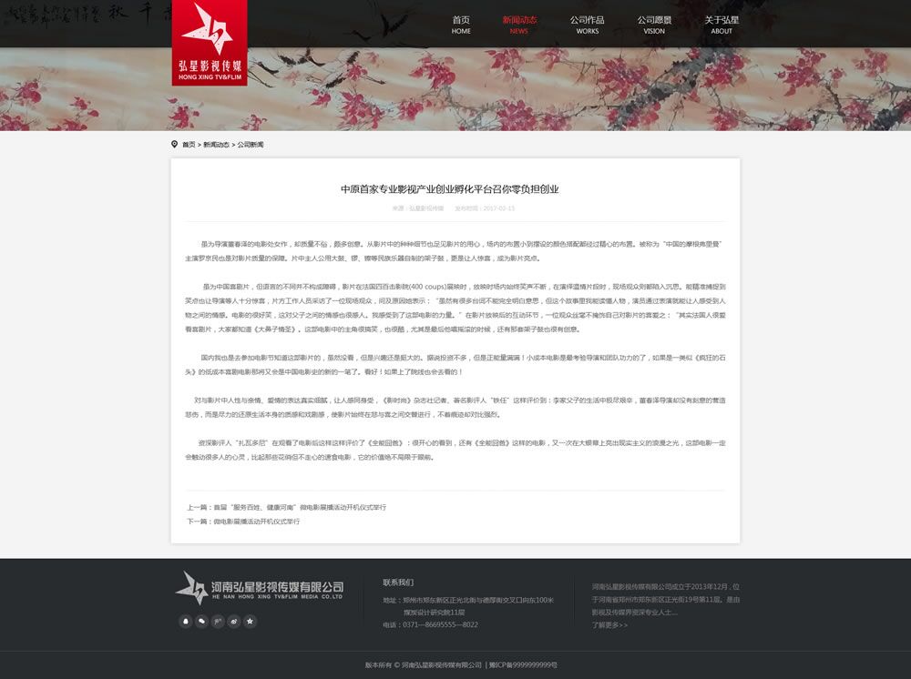 在這里給大家展示啟凡所制作弘星影視傳媒公司的案例: